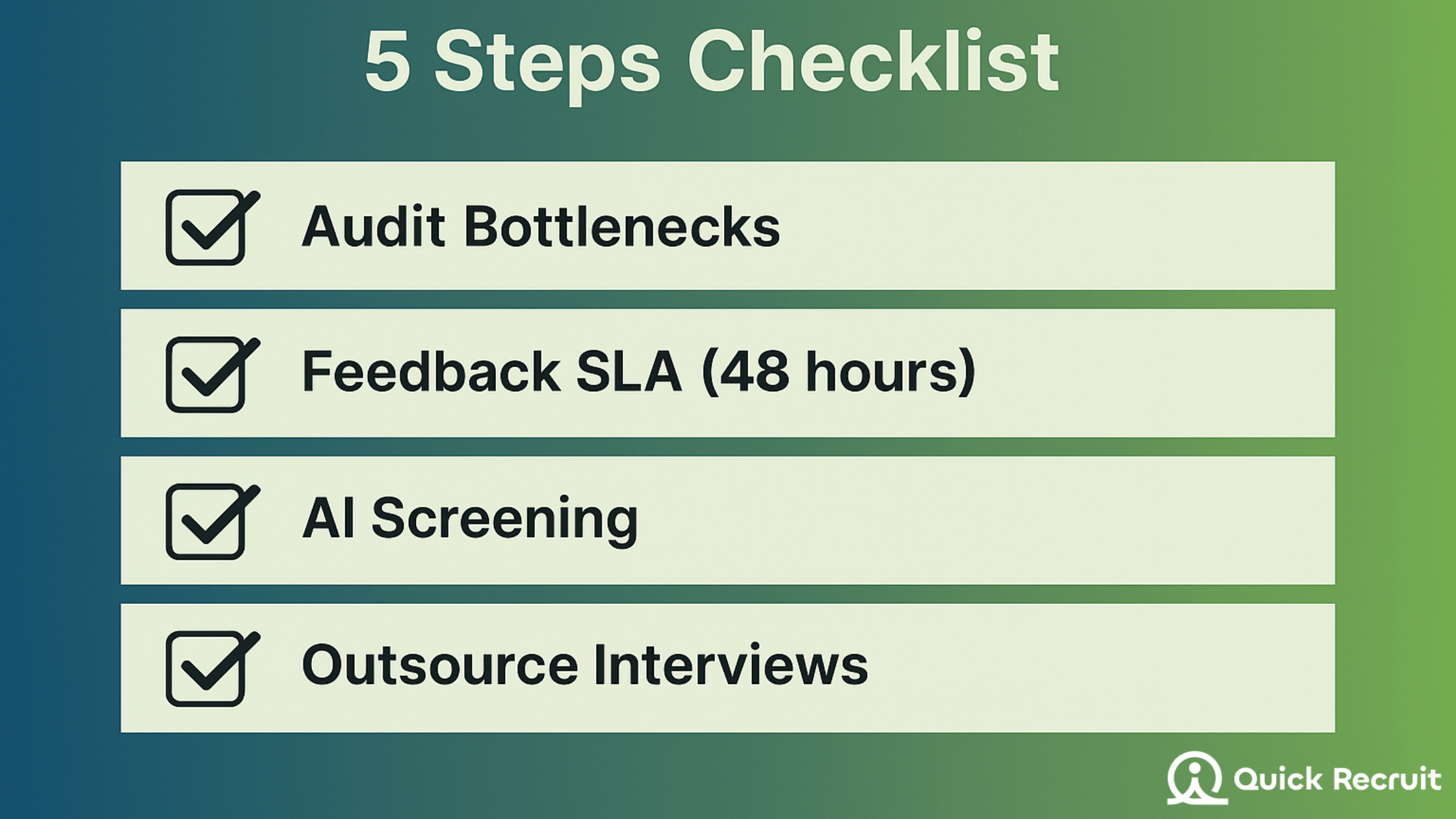 Here’s how to attack the problem systematically. Each strategy helps reduce inefficiencies and accelerate hiring, without compromising quality.