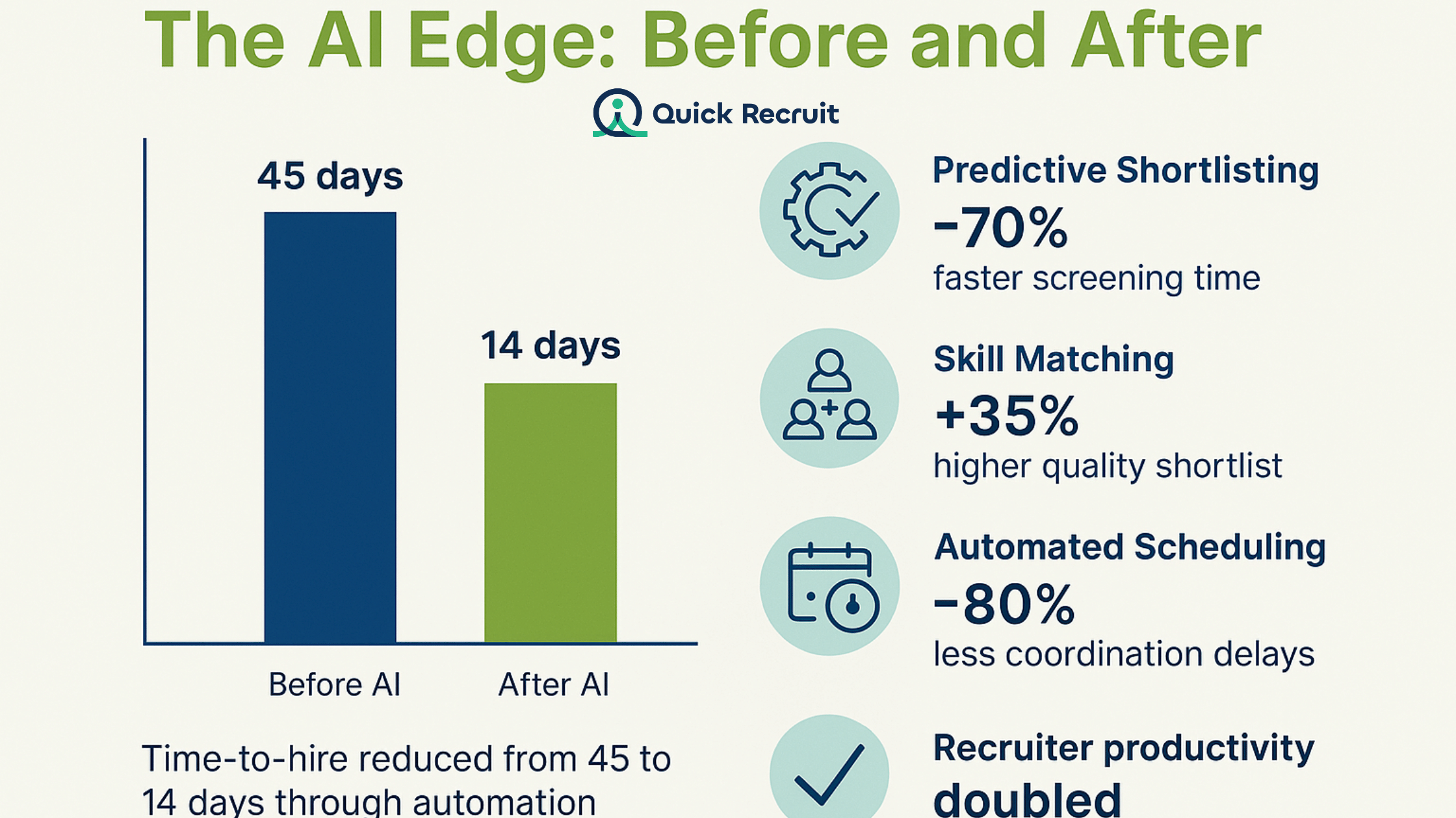 Companies using AI recruiting platforms like QuickRecruit are consistently seeing 25%–50% reductions in time-to-hire across roles, industries, and regions.